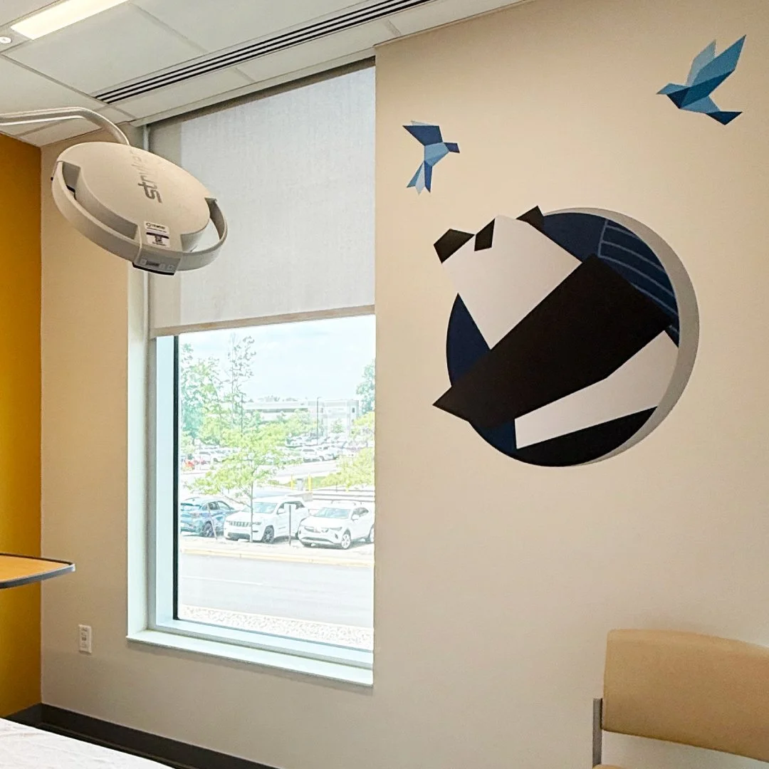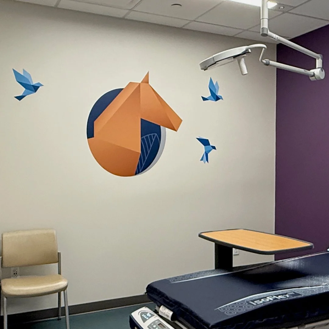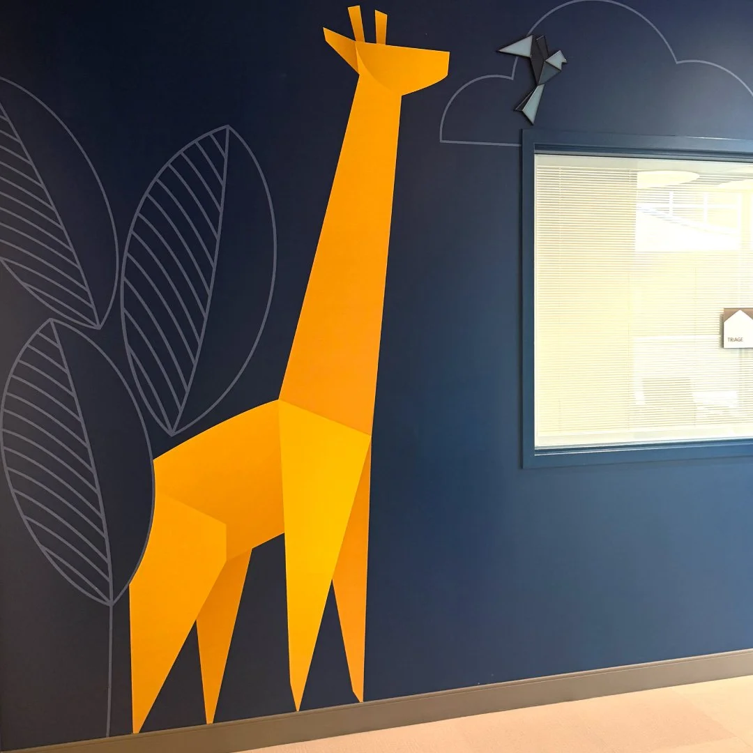 Our friends at Insite Art invited us to develop custom graphics for a new children’s hospital. We truly enjoyed designing and illustrating a collection of origami animals to fill the corridors and patient rooms. These friendly critters welcome families dealing with all types of issues into a comfortable, engaging environment.